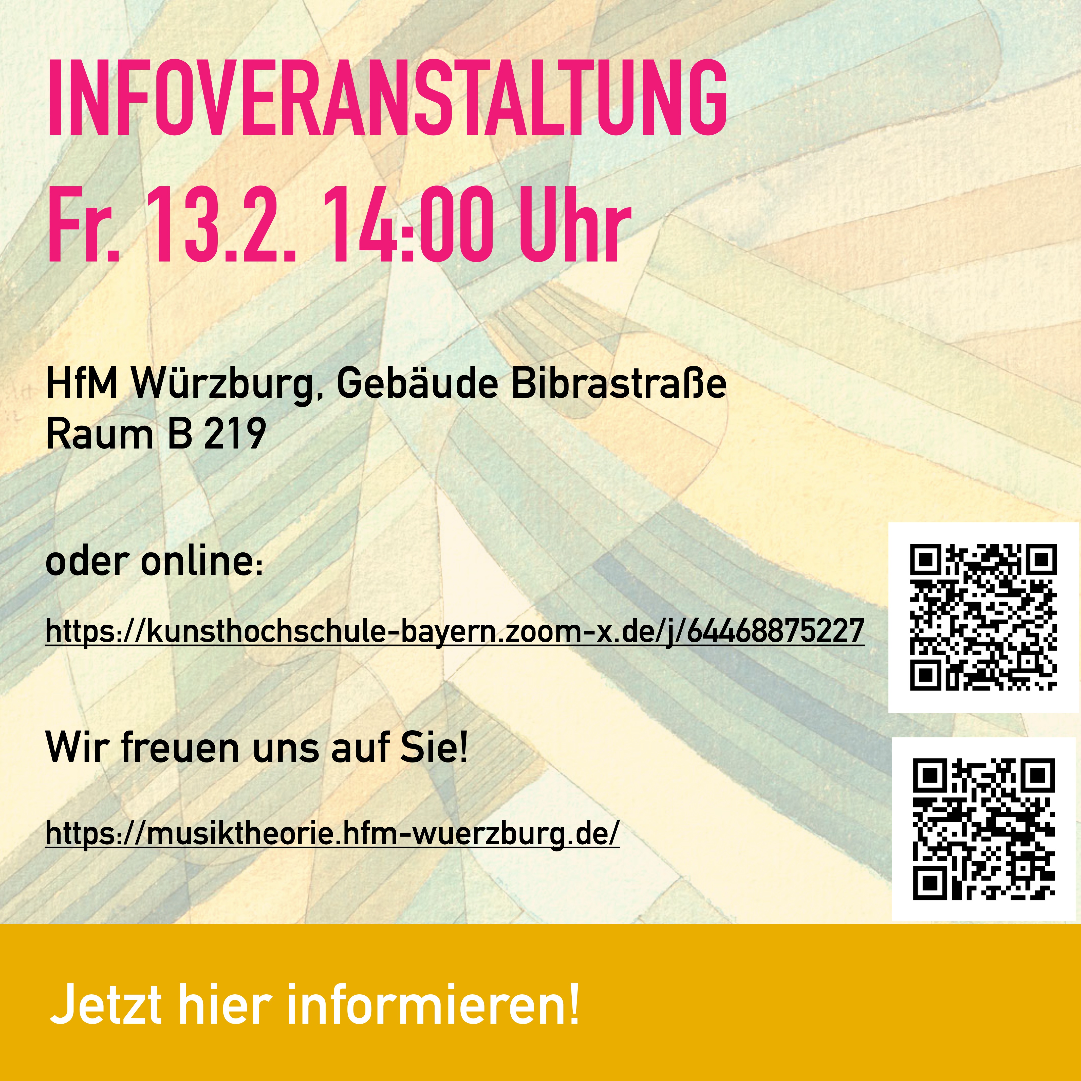 Herzliche Einladung zur Info-Veranstaltung am Fr. 13.2. um 14:00 Uhr für unsere Studiengänge mit Hauptfach Musiktheorie!